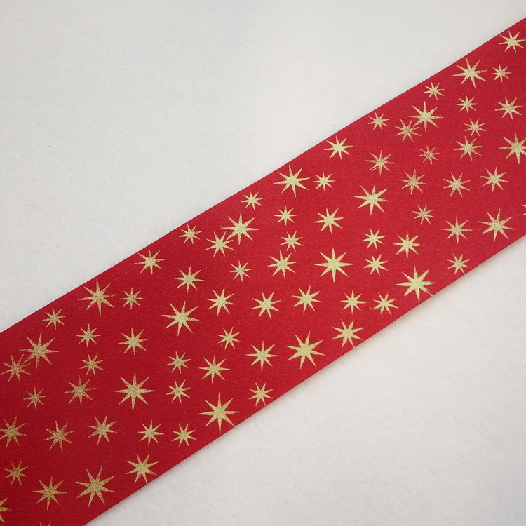 Berisfords Polyester Satin Ribbon- Red & Gold Stars- 35mm/65mm