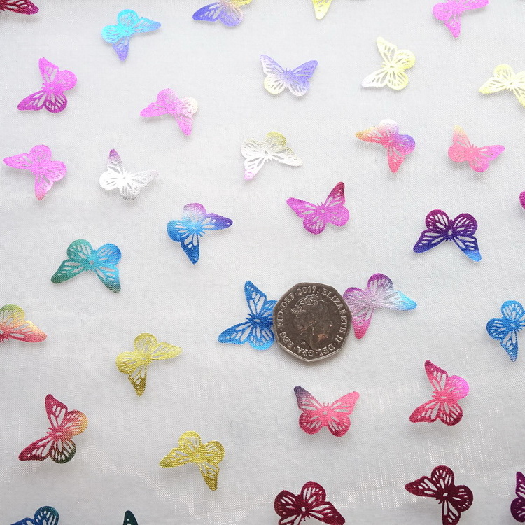 Colour - Multi Coloured Foil Butterflies On A White Background-