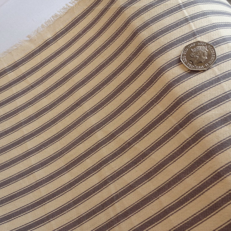 DescriptionTicking Stripe fabric is usually made from 100% cotton or a blend of cotton and linen yarns in a herringbone weave. In a ticking stripe you have the central coloured, thick stripe with a thin stripe either side usually in the same colour – this gives the illusion of a wider stripe. Stripes are 8mm.