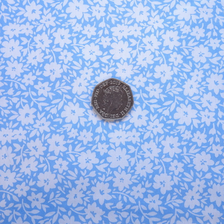 80% Poly 20% Cotton - Floral Print - 110cm/43" Wide - Pale Blue