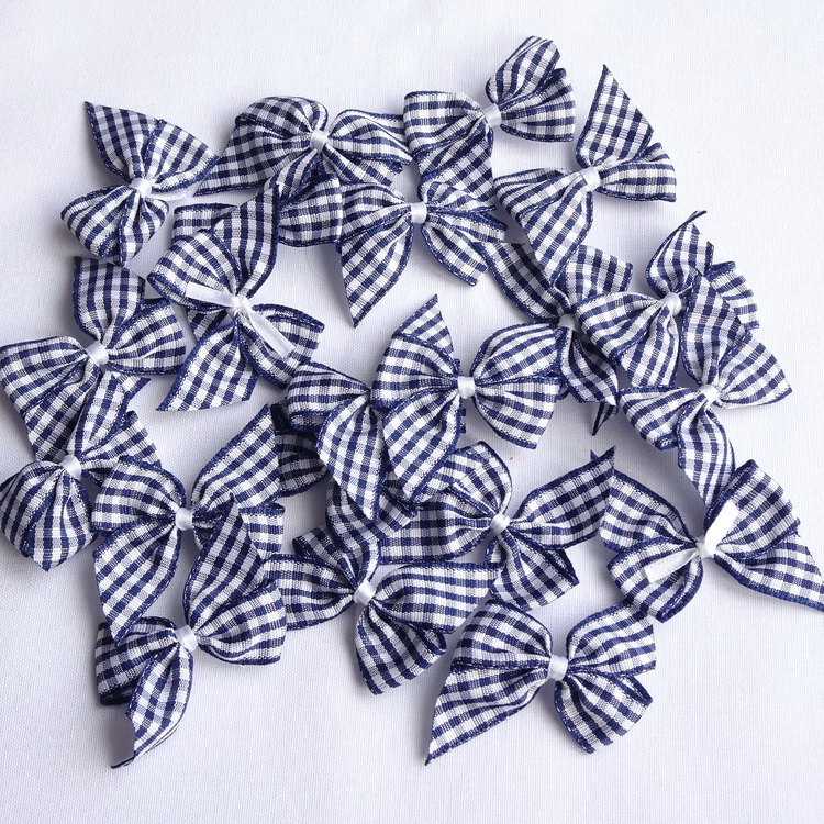 Navy And White Gingham Bows - 40mm Across - 21 Or 100 Bows Per Pack
