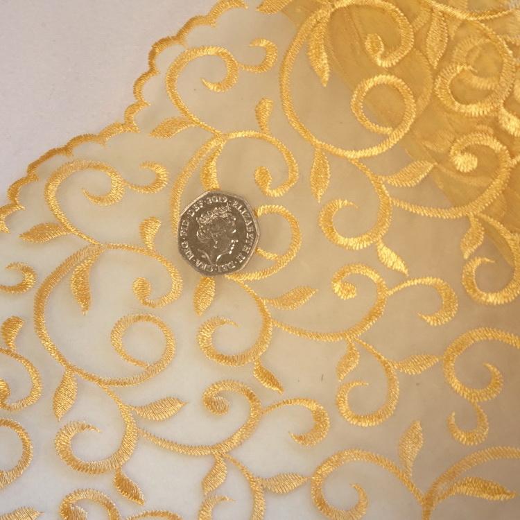 Nylon Organza Embroidered Lace- Gold- Sample