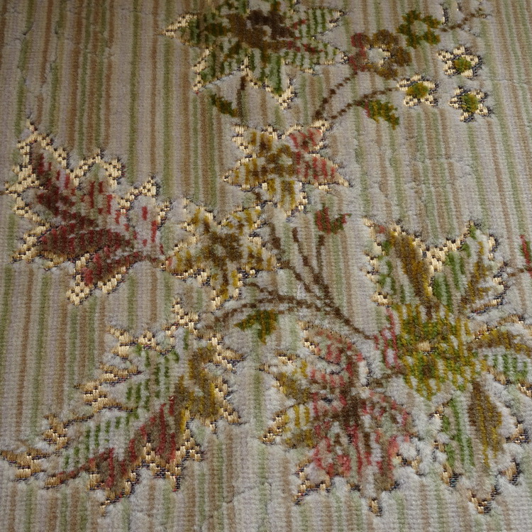 Beige And Green Patterned Dralon Velvet - Sample