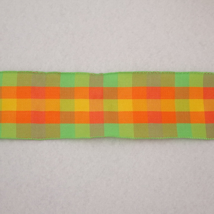 Polyester Ribbon - Green & Orange Check - 38mm Wide