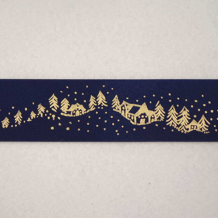 Polyester Satin Ribbon - Gold Christmas Trees - 2 Widths / 5 Colours Available