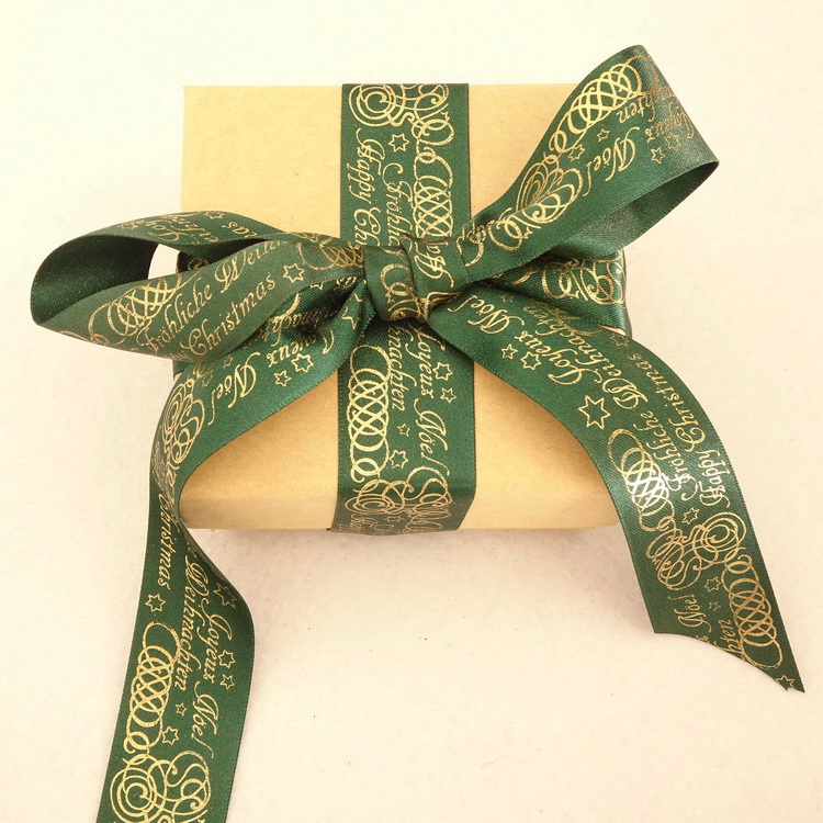 Polyester Satin Ribbon - Happy Christmas - 2 Widths / 4 Colours Available