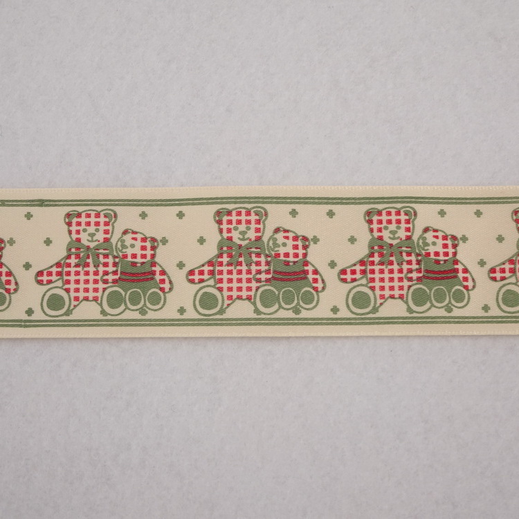 Polyester Satin Teddy Bear Ribbon- Black & Red Mix, Green & Red Mix- 33mm Width