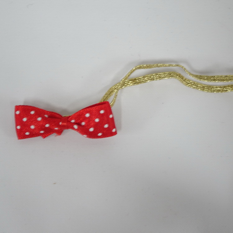 Red And White Spotty Satin Bows With Attached Gold Elastic-