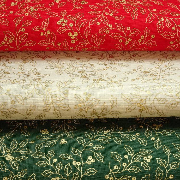 Rose & Hubble - 100% Cotton - Christmas Holly - 135cm / 53" Wide - 3 Colours Available