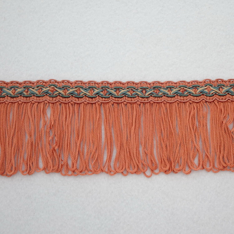 Silky Looped Fringe 65mm- Terracotta & Green
