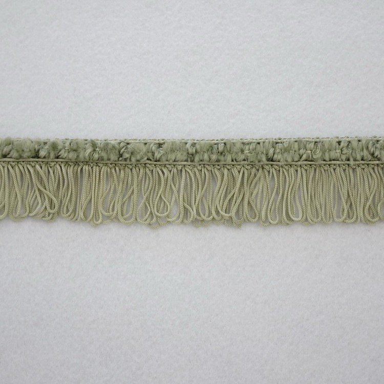 Silky Looped Fringe & Velvet Braid- 30mm- Green