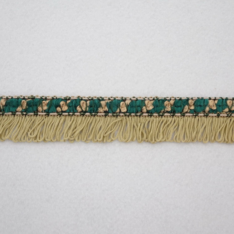 Silky Looped Fringe & Velvet Braid- 30mm- Green & Gold