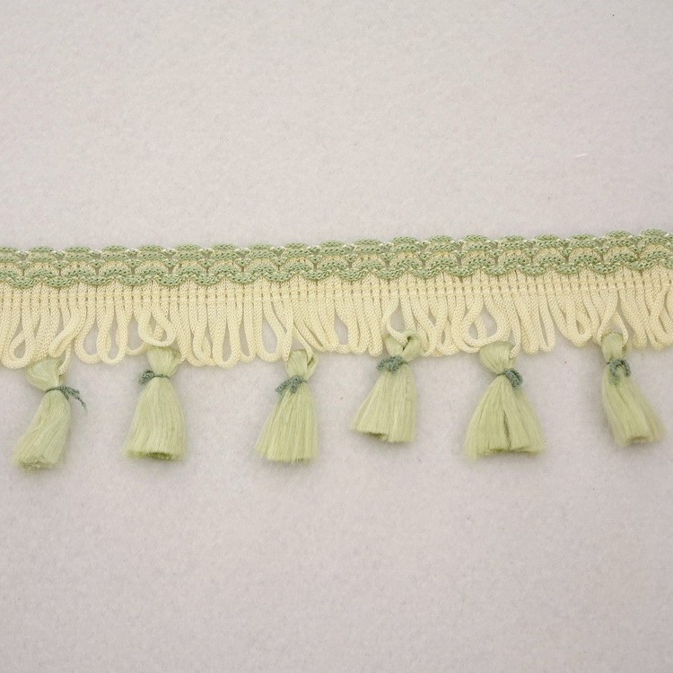 Silky Looped Tassel Fringe- 55mm- Green & Cream Mix